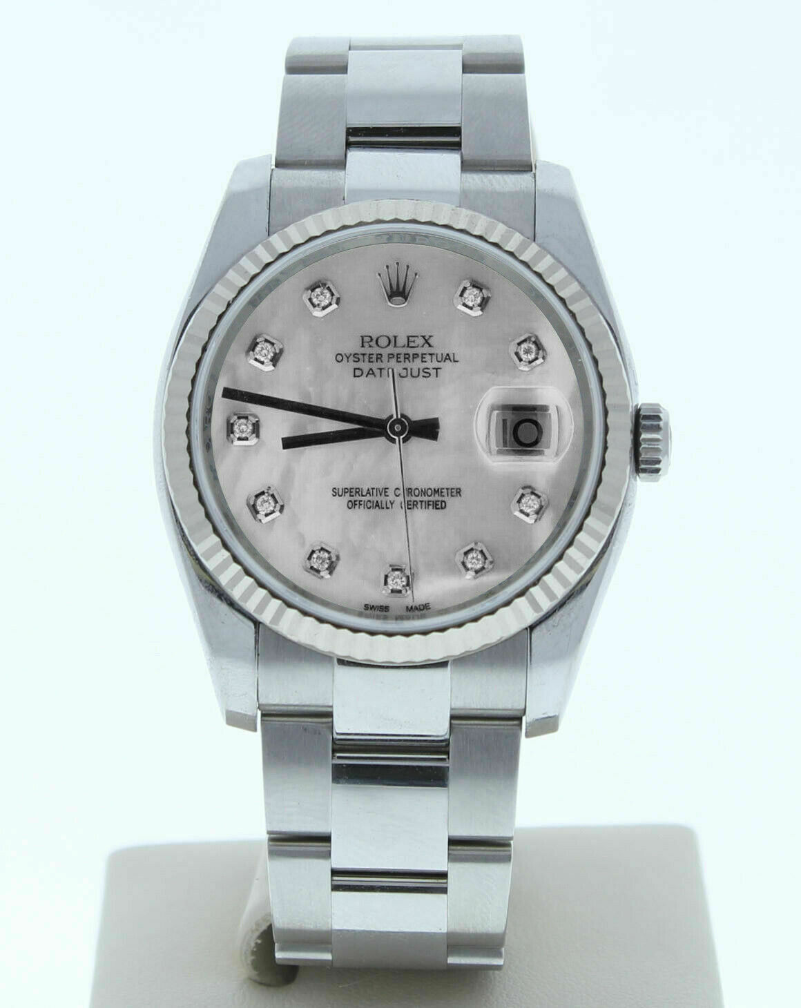 This Rolex Datejust Mens Watch Is In Mint Condition. The watch is currently being manufactured today, it has a newstyle stainless steel oyster band that can be sized up to a 7 3/4″ wrist size, If you have a larger wrist please let us know and we will try to accommodate you. The case measures at 36mm and comes with a deployment buckle.