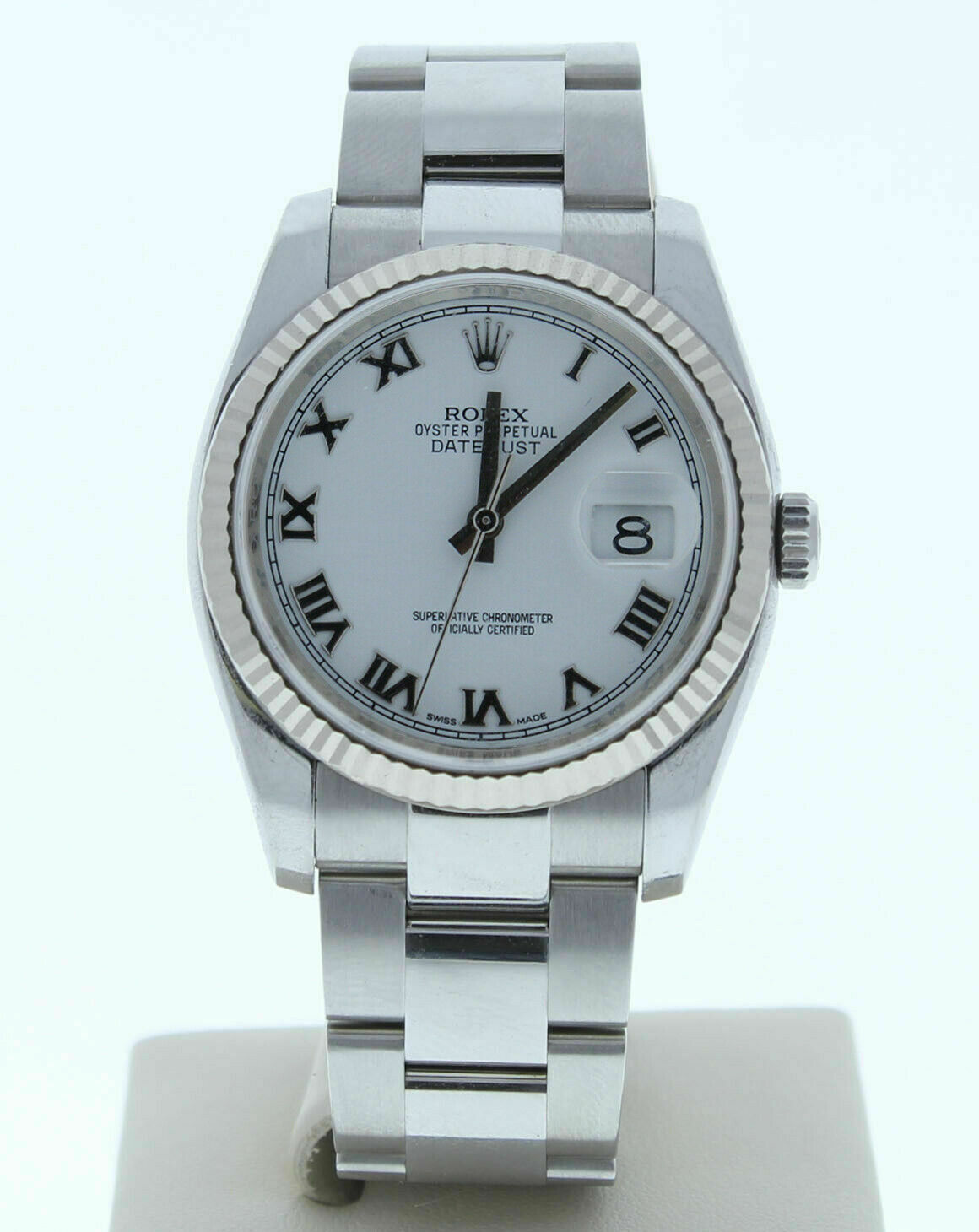 Rolex Datejust 116234 Oyster Band White Roman Dial & 18k White Gold Fluted Bezel