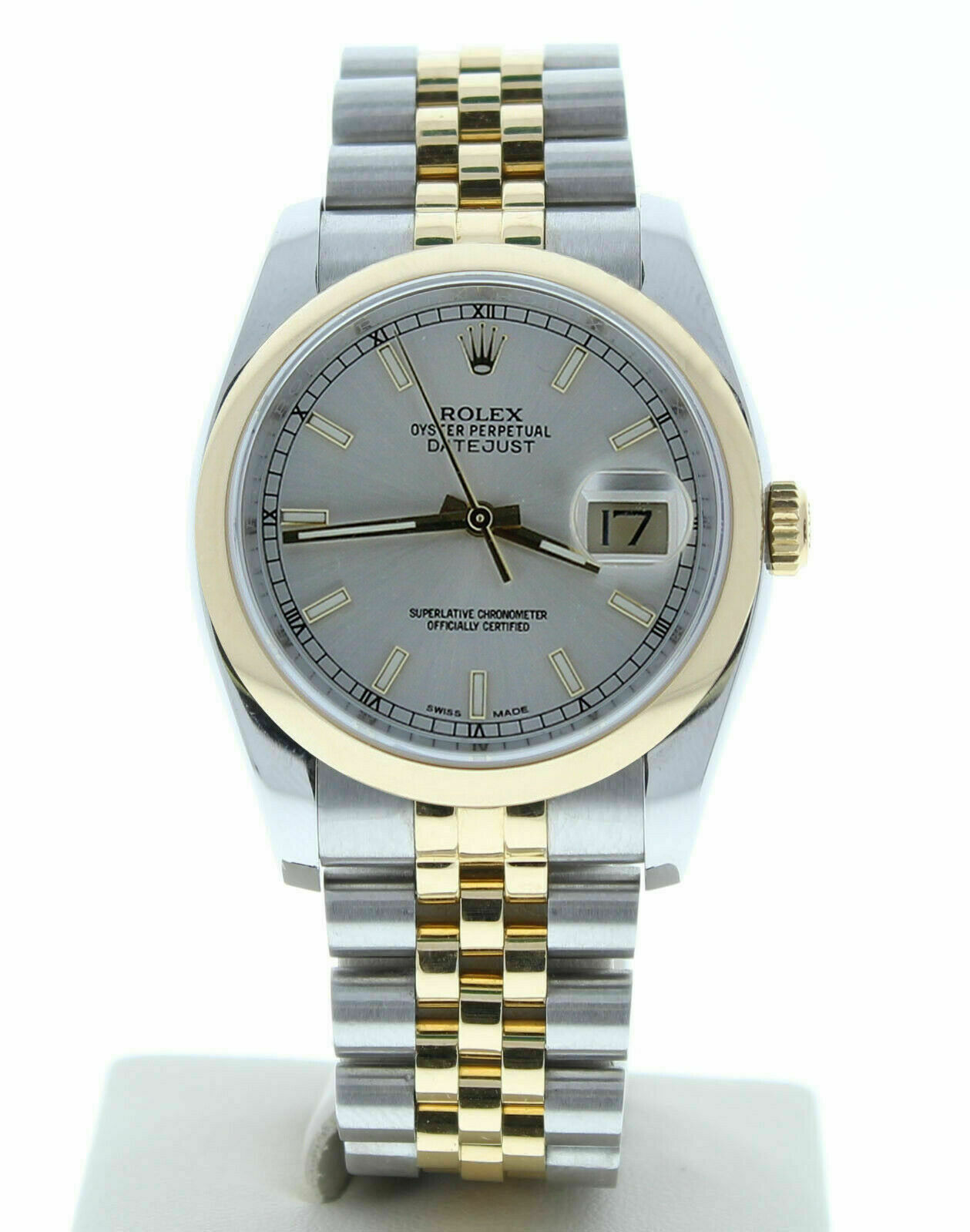 Rolex Datejust Model 116203 Steel & Gold Jubilee Band Watch Silver Index Dial