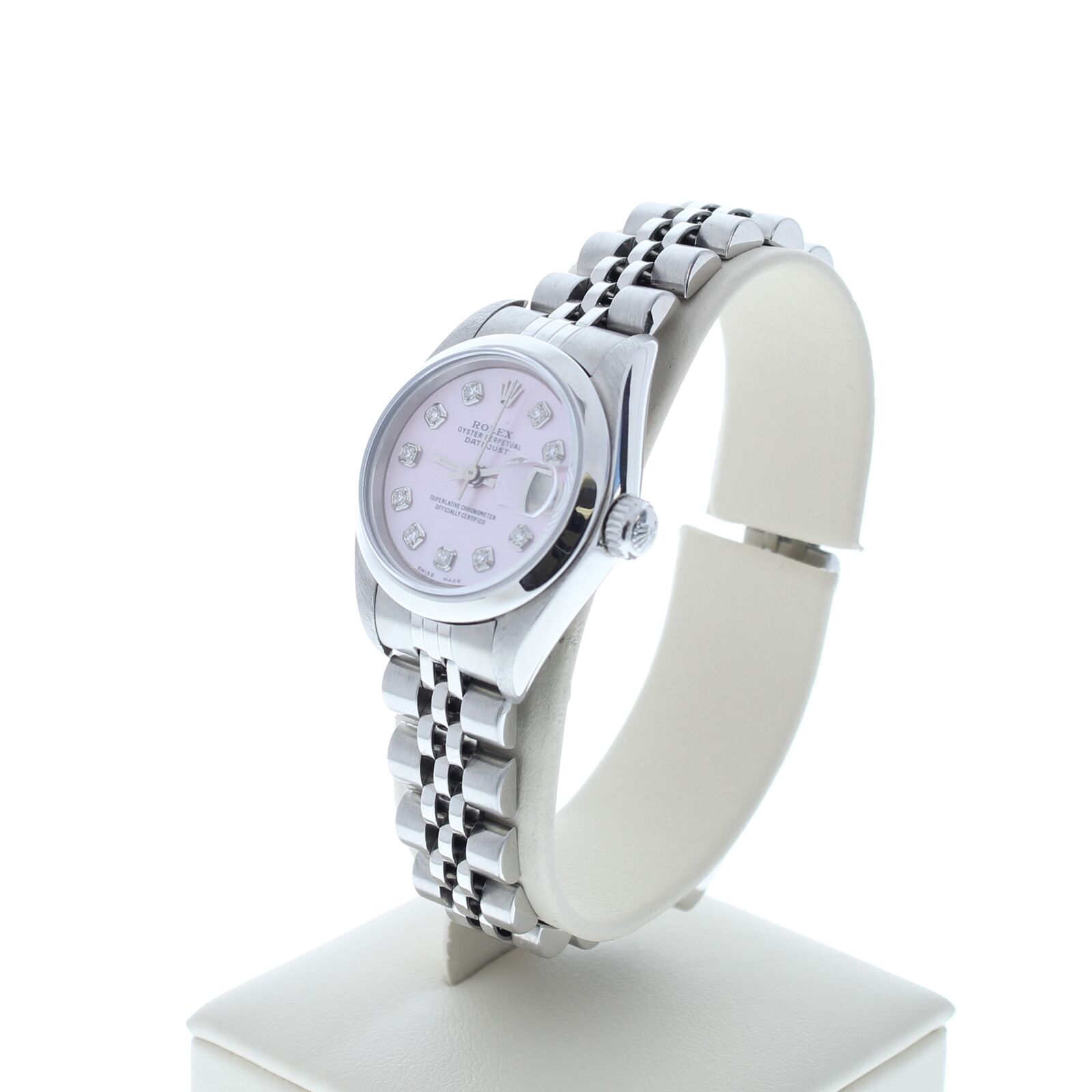 Rolex Ladys 26mm Datejust Model 69160 Custom Pink Mother Of Pearl Diamond Dial