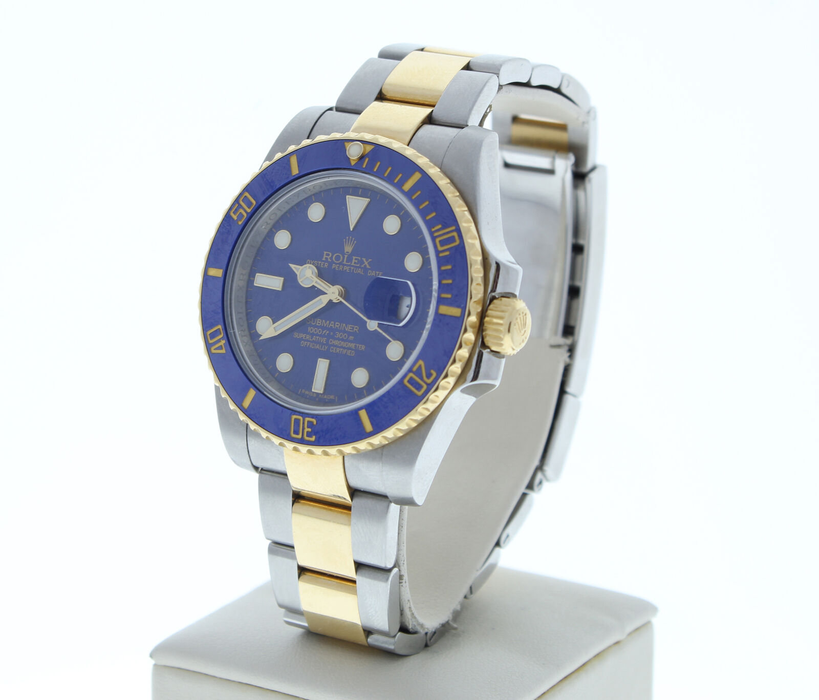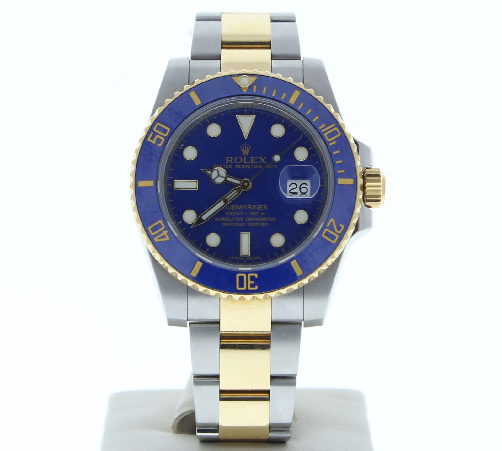 This Rolex Stainless Steel & 18k Yellow Gold Submariner Ceramic Date Watch Is In Like Day One Condition (Zero Scratches Or Signs Of Wear). It has a oyster band that fits up to a 7 3/4″ wrist size, If you have a larger wrist please let us know and we will try to accommodate you. The watch case measures at 40mm and is designed with the oyster fold over clasp. If you have any questions at all please feel free to contact us . We reply to all emails within 24 hours during business days.
