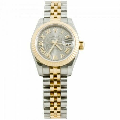 Rolex Model 179173 Ladys 26mm Datejust Watch Silver Sunbeam Dial & Fluted Bezel