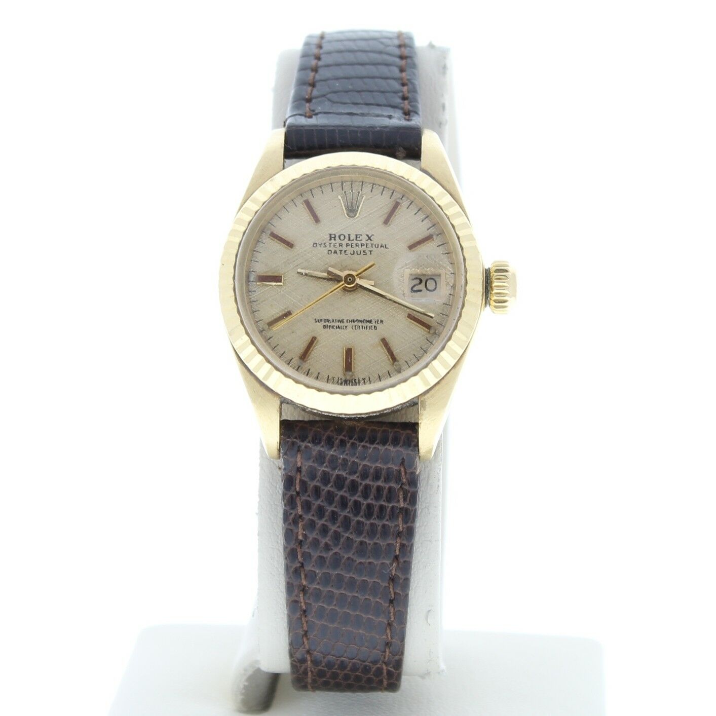 Rolex Model 6917 26mm 18k Gold Datejust Champagne Linen Dial & Fluted Bezel