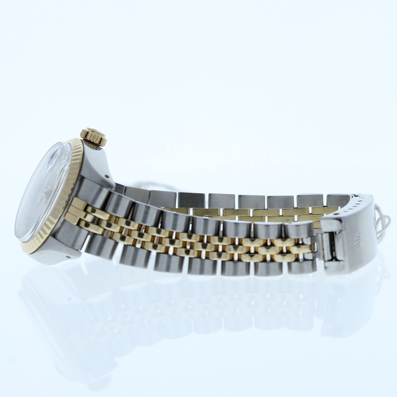 This Rolex has been beautifully restored to look brand new. This watch has been tested for accuracy and water pressure. This is a 80’s-early 90’s era model with a stainless steel and 14k yellow gold jubilee band that can be sized up to a 6 3/4″ wrist size, If you have a larger wrist please let us know and we will try to accommodate you. The watch case measures at 26mm and comes with a deployment buckle.