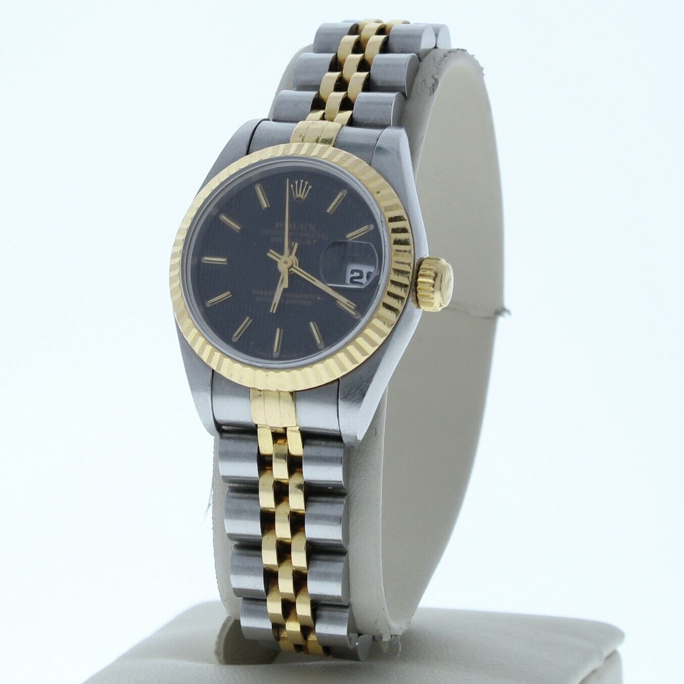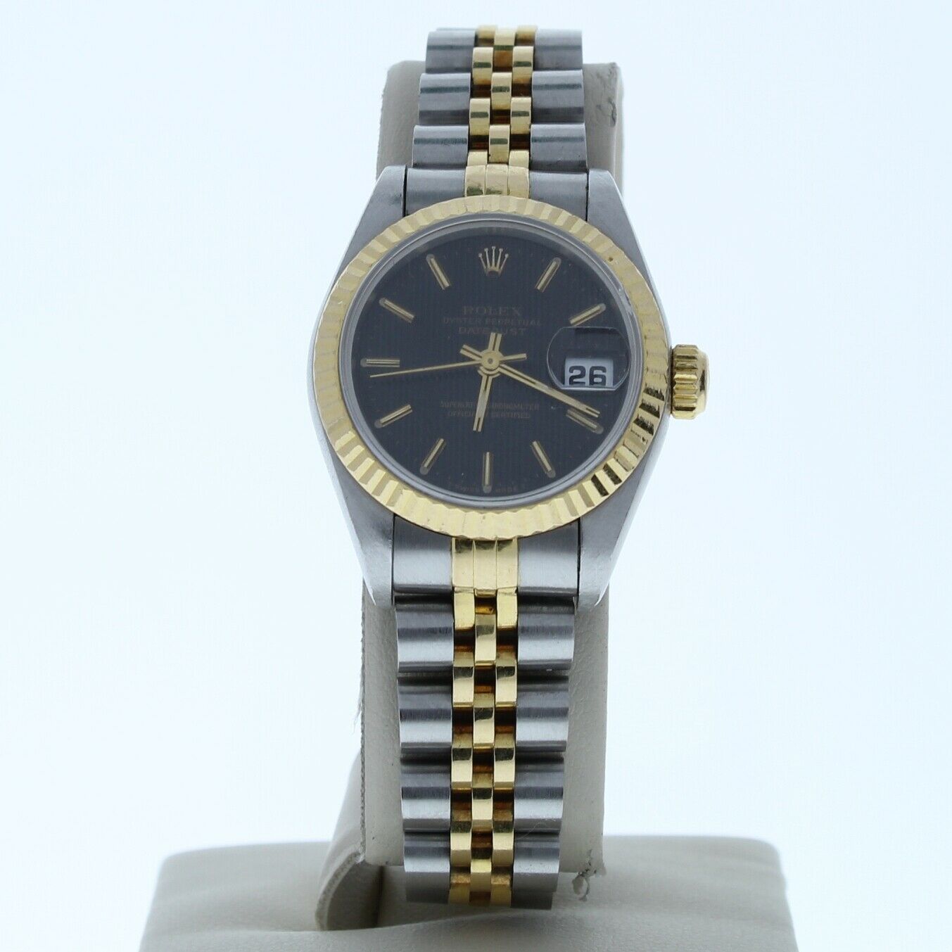 This Rolex has been beautifully restored to look brand new. This watch has been tested for accuracy and water pressure. This is a 90’s era model with a stainless steel and 18k yellow gold jubilee band that can be sized up to a 6 3/4″ wrist size, If you have a larger wrist please let us know and we will try to accommodate you. The watch case measures at 26mm and comes with a deployment buckle.