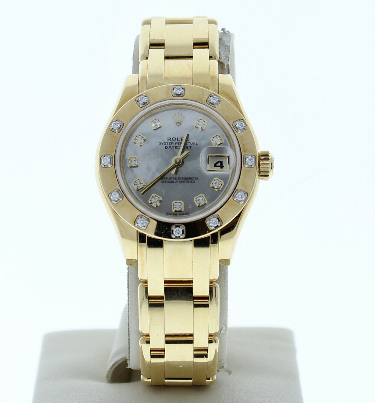 This Rolex has been beautifully restored to look brand new. This watch has been tested for accuracy and water pressure. This is a 2010 era model with a 18k yellow gold masterpiece band that can be sized up to a 6 3/4″ wrist size, If you have a larger wrist please let us know and we will try to accommodate you. The watch case measures at 29mm and comes with a deployment buckle.
